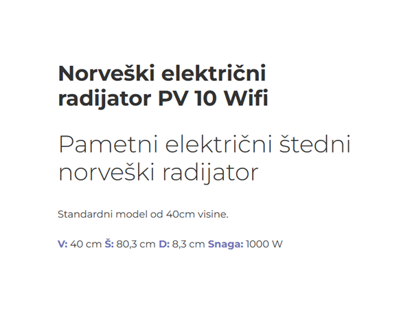 Beha Norveški radijator električni PV10 1000W razvijen je na temelju više od 100 godina iskustva tvrtke BEHA. Dizajniran u Norveškoj, zadovoljava najviše standarde kvalitete i sigurnosti te je u potpunosti usklađen s EU ECO DESIGN direktivom.