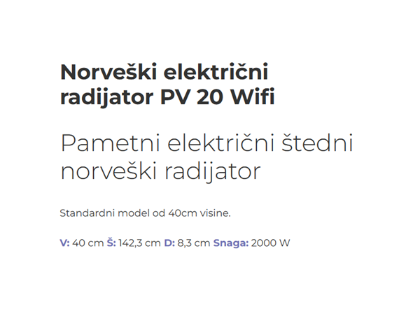 Beha Norveški radijator električni PV20 2000W razvijen je na temelju više od 100 godina iskustva tvrtke BEHA. Dizajniran u Norveškoj, zadovoljava najviše standarde kvalitete i sigurnosti te je u potpunosti usklađen s EU ECO DESIGN direktivom.
